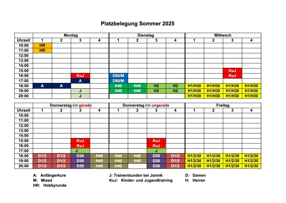 Unsere Platzbelegung